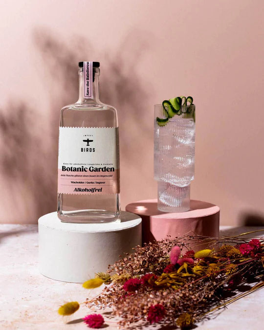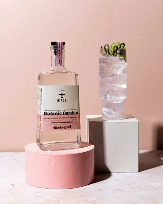 BIRDS Botanic Garden ist eine alkoholfreie Gin-Alternative für moderne Genießer, die zwar auf Alkohol, aber nicht auf Premium Genuss verzichten wollen. Hochwertigste Destillate der besten natürlichen Rohstoffe geben ihm sein unverwechselbares, frisches Geschmacksprofil mit einer belebenden Schärfe. BIRDS Botanic Garden ist nicht nur alkoholfrei, sondern auch zuckerfrei, kalorienarm (3 kcal / 100ml), glutenfrei und vegan.