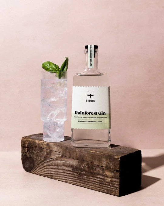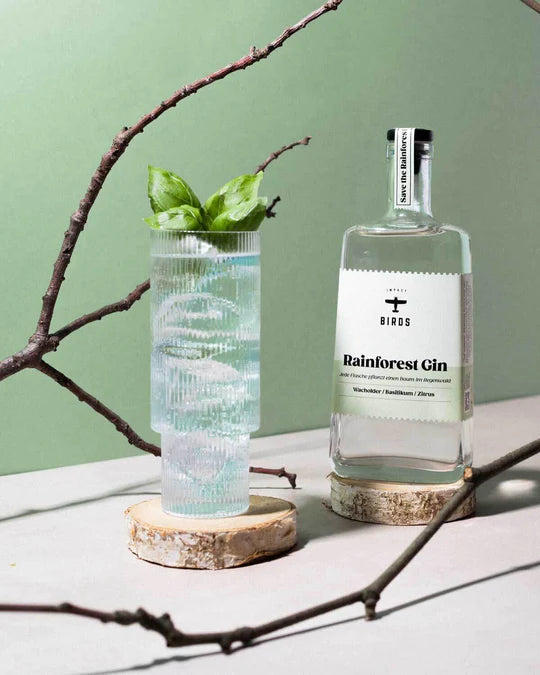 Der BIRDS Rainforest Gin schmeckt wie "Urlaub im Glas". Neben den Wacholderbeeren forciert sich BIRDS auf frische, mediterrane Zitrus- und Basilikum-Noten, ideal abgerundet mit Ingwer und Rosa Pfeffer.