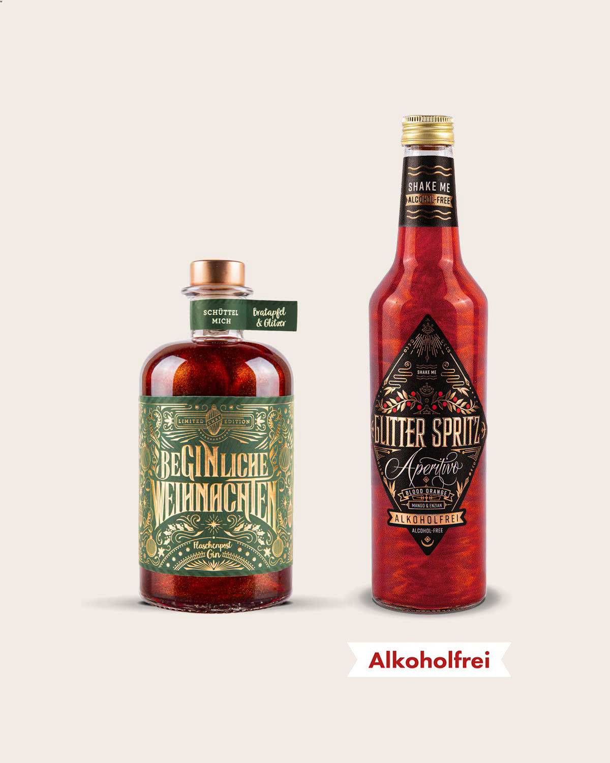 Unser GLITTER SPRITZ™ – Limited Xmas Edition enthält weniger als 0,5 % Alkohol und wird damit als alkoholfrei eingestuft. Dennoch empfehlen wir, den Genuss in der Schwangerschaft individuell abzuwägen.