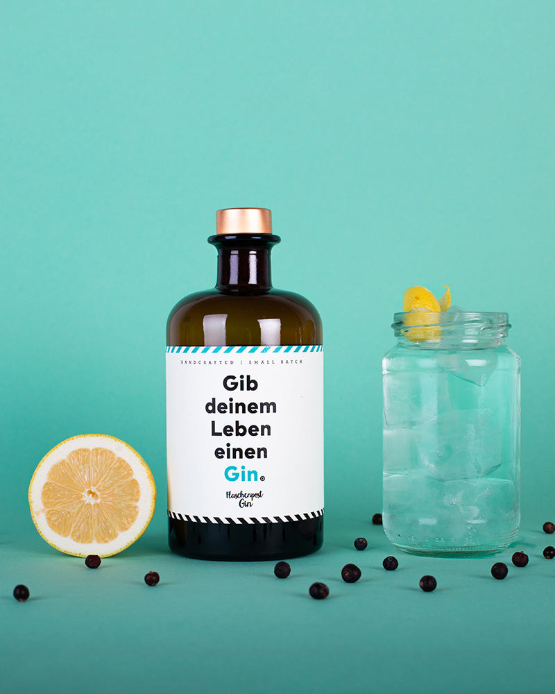 Unser Flaschenpost Gin "Gib deinem Leben einen Gin" eignet sich ideal als Basis für deinen nächsten Gin und Tonic.