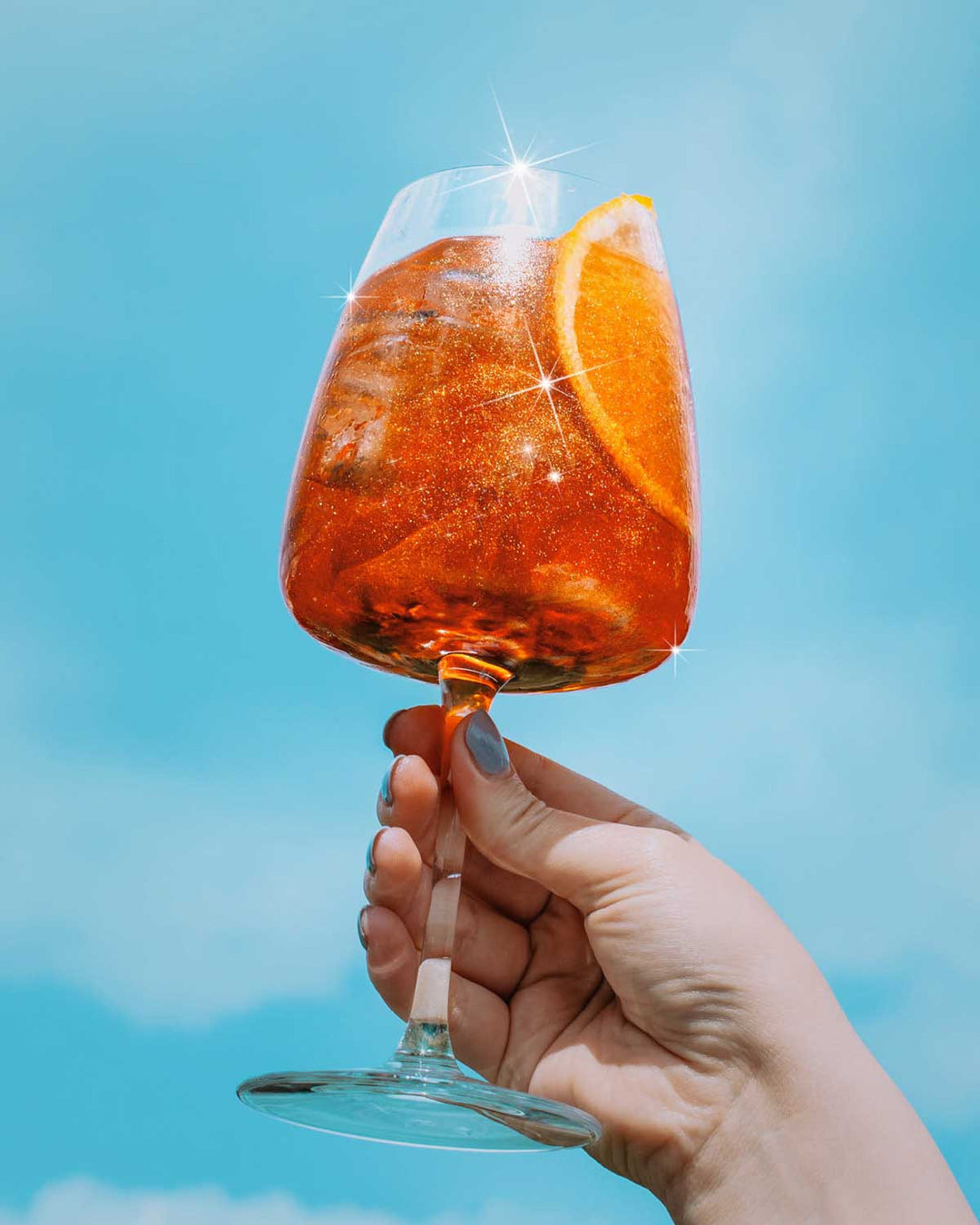 Bühne frei für den Superstar der Trendgetränke-Welt: der Aperol-Spritz! Sein spritziger und leichter Charakter macht ihn zum perfekten Begleiter für sonnige Tage und lange Nächte unter freiem Himmel. Lebensfreude und italienische Leichtigkeit inklusive - also ein absolutes Must-Have für den Sommer & Garant für Urlaubsfeeling im Glas. Doch jetzt wird es Zeit, für eine moderne Aperitivo-Revolution zu sorgen - mit unserem brandneuen Glitter Spritz Aperitivo! Ja, richtig gehört: Dieser einzigartige Aperò glitzert und funkelt. Außerdem ist er nicht nur unglaublich lecker, sondern setzt sich auch noch für soziale und nachhaltige Projekte ein.