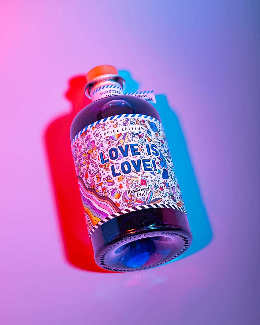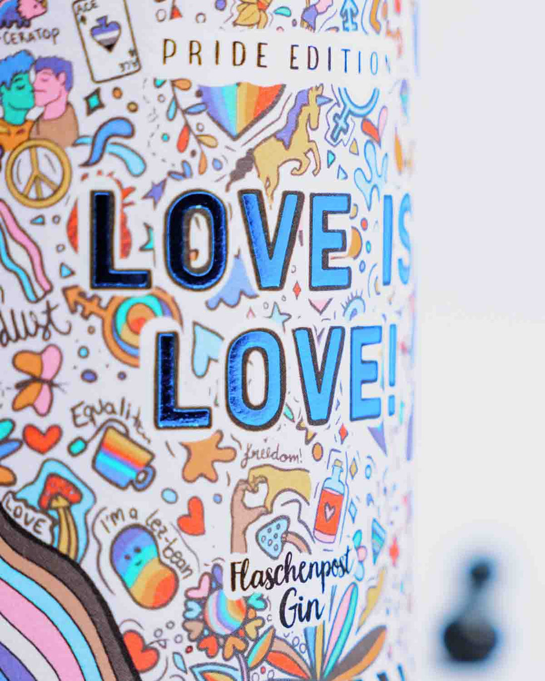Die Pride Edition von Flaschenpost Gin möchte mit ihrem Spruch und dem Hashtag: "Love is Love" ein Zeichen gegen Ausgrenzung und für die Liebe setzen.