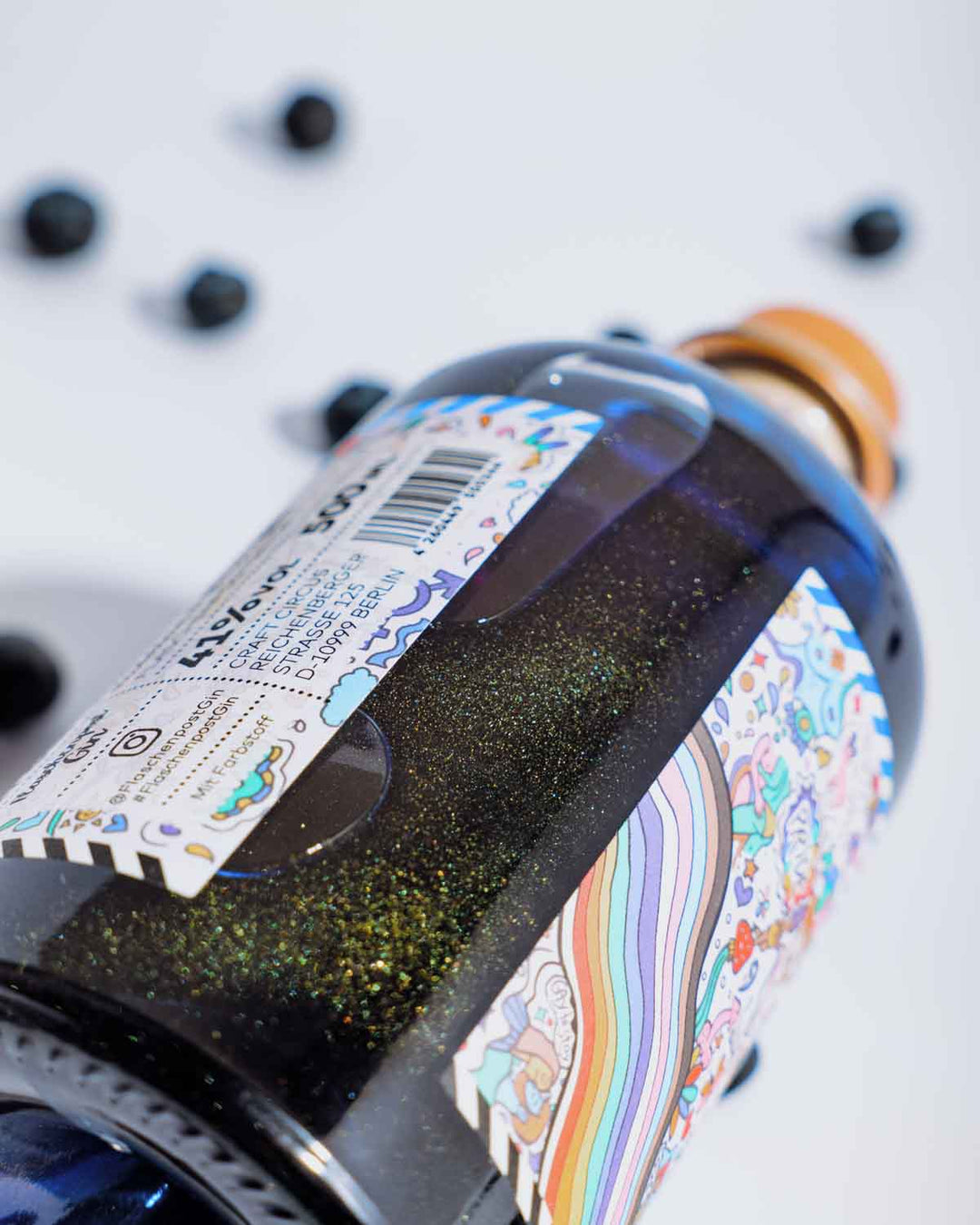 Das Video zeigt den neuen goldenen Glitzer Effekt im blauen Gin der neuen Flaschenpost Gin Pride Edition "Love is Love".