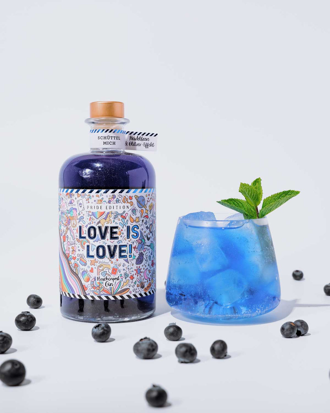 Love is Love - Pride Edition mit Glitzer - Blauer Glitzer Gin mit Heidelbeere